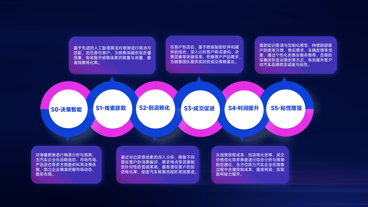 通过拓宽潜在客户来源、、优化线索分配并提高到店转化率,,以增强销售效率。。同时,,利用线索数据不断优化分析模型,,有效提升转化率,,,扩大营销影响力。。
